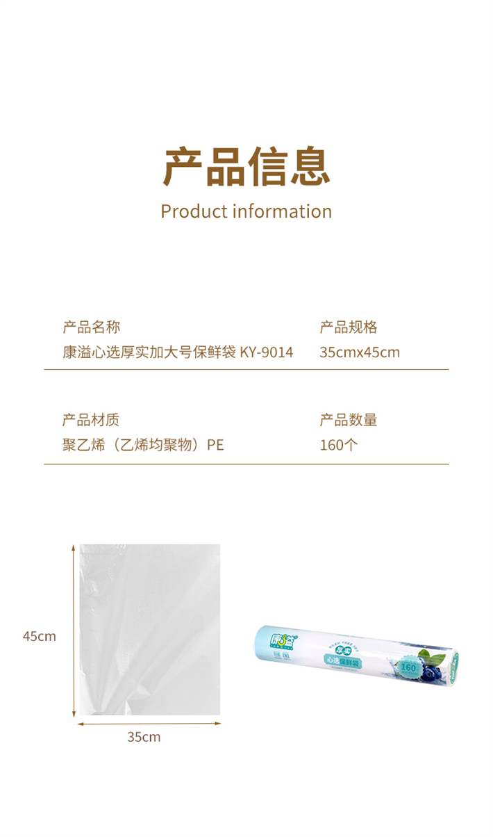 康溢心选厚实加大号保鲜袋35cm*45cm(160个)KY-9014