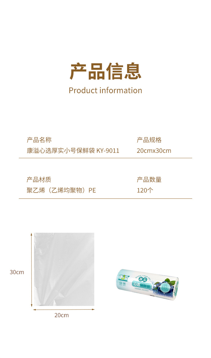 康溢心选厚实小号保鲜袋20cm*30cm(480个)KY-9011
